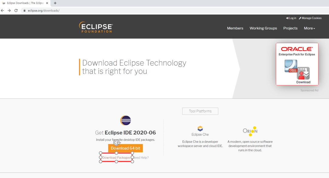 Eclipse 의 다운로드 페이지에서 Download Package 를 선택한다.