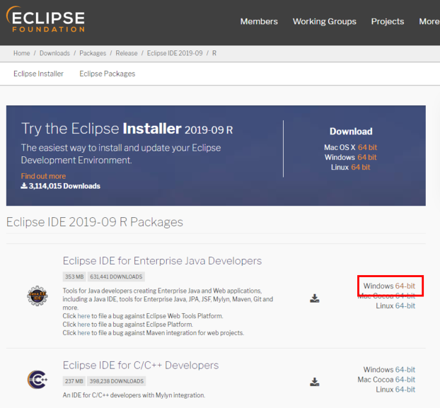 원하는 화면으로 이동 후 각자의 OS 에 맞는 걸로 Eclipse IDE for Enterpirse Java Develpoers 를 다운 받으면 된다.