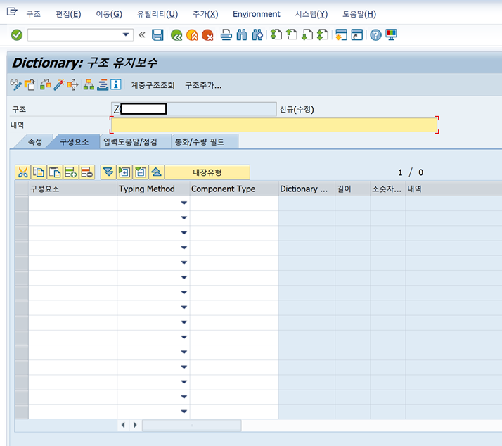 (단, SE11 에서 진행한 경우 Package 를 지정하지 않았기때문에 추후 저장 또는 활성화 할때 Package 를 지정해줘야한다.)