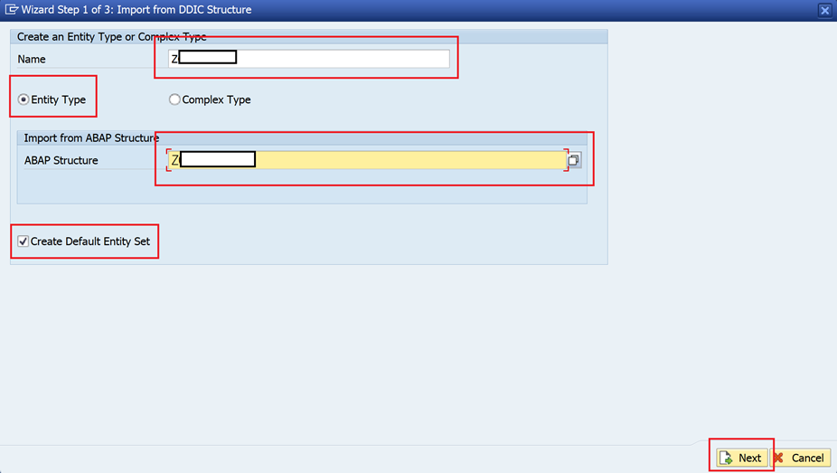 Create Default Entity Set 선택 후