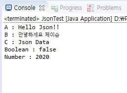 System.out.println("Boolean : " + (jsonObj.getBoolean("Boolean") == false));