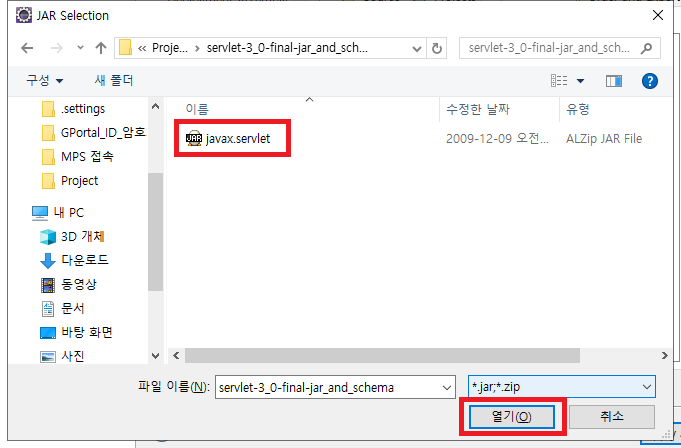 만약 WAS 를 사용하지 않거나 라이브러리를 따로 사용한다면 javax.servlet.jar 파일을 다운로드 받아 설치하면 된다.