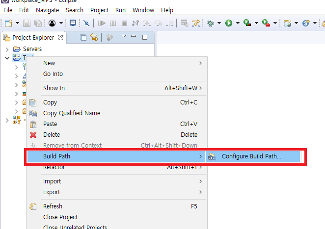 혹시 까먹을지도 모르니 Build Path 하는 방법을 남겨본다.