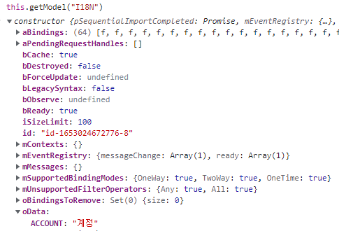 즉, I18N 이라는 Model 에 oData 아래에 있는 ACCOUNT 라는 field 의 값을 불러오고 수정할 수 있게 되는 것이다.